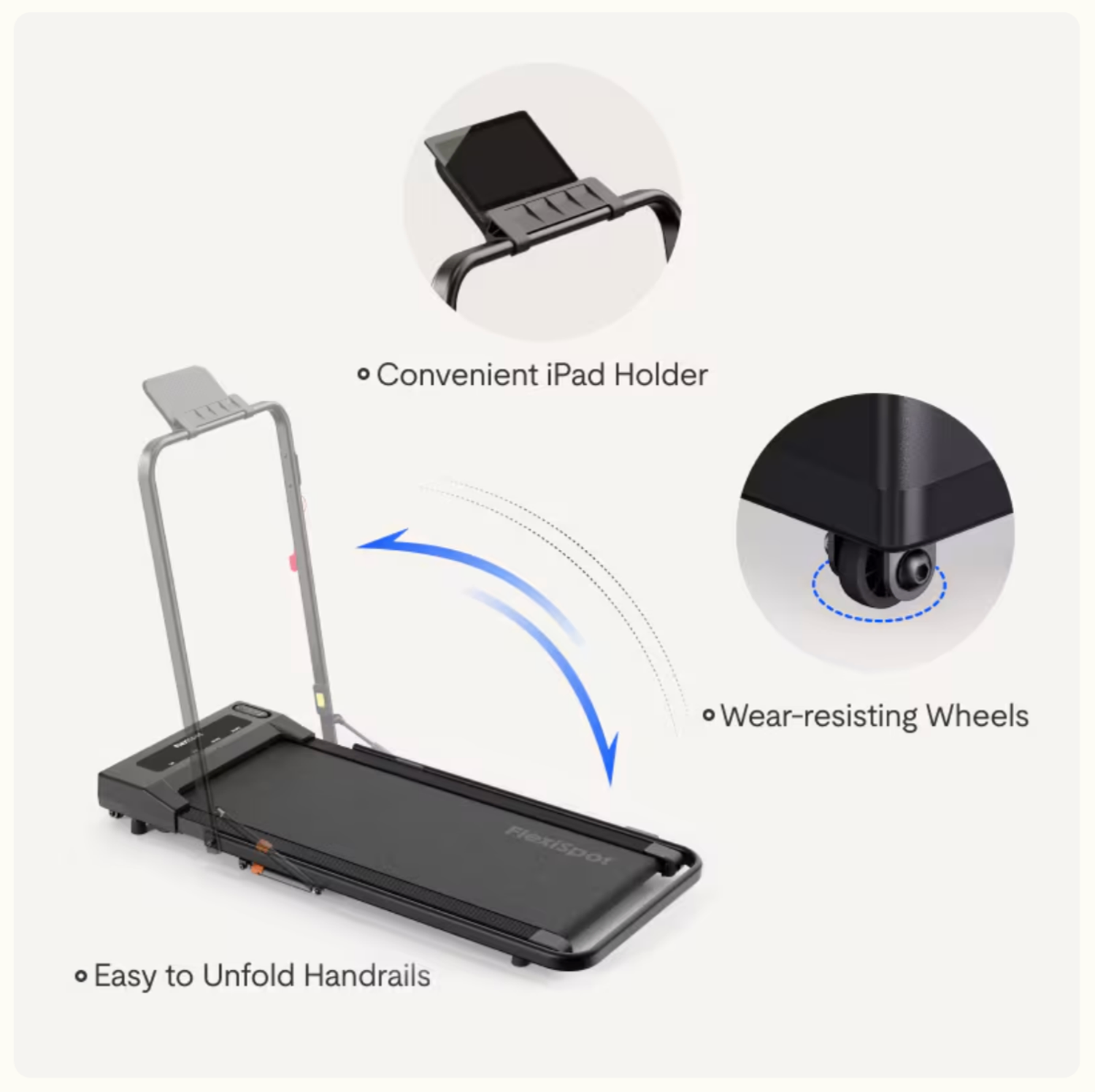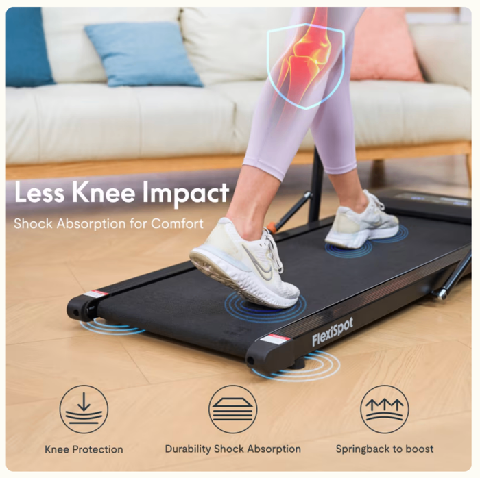 FlexiSpot WPS02 нь жижиг зай талбайд ашиглахад тохиромжтой алхалт болон хөнгөн гүйлт хийх боломжтой зам юм. Гарны түшлэг нь хураагддаг, зөөвөрлөхөд хялбар тул та ашиглаагүй үедээ гэрийнхээ аль нэг буланд хураах боломжтой. Мөн дуу чимээ бага байхаар хийгдсэн мотор болон загвартай тул гэр, оффис зэрэг бүхий л орчинд ашиглахал тохиромжтой. Гарны түшлэг дээрээ таблет, утсаа байрлуулан дасгал хийх үедээ юм үзэх боломжтой.